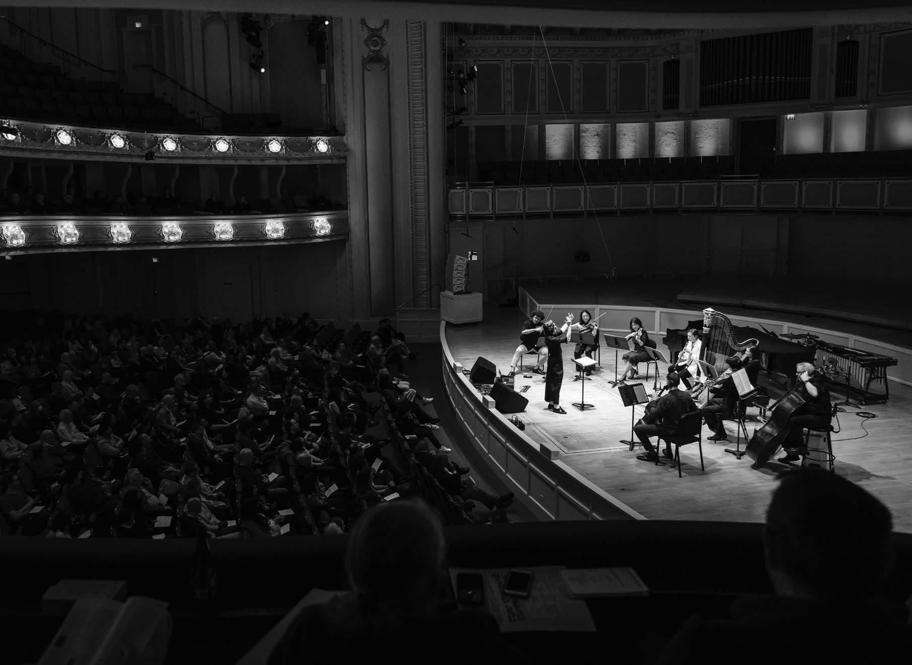mercurial humor and lopsided grooves. The accumulation of quicksilver textures explodes in fanfares, with the opening chorale tune reappearing dramatically, and all musical elements spin together in the concerto’s final minute.