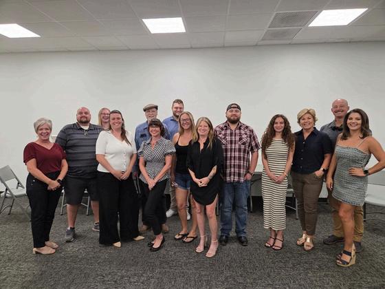 2025-2026 Chamber staff and board members l-r: Amie Wade, Abagayle Myers, Becky Fawson, Tami Ursenbach, Kim Bilbrey, Scott Kern, Allen Poston, Bob DeVries, Tom Price, Julio Galindo, Nicole Broh, Laurie Voss Barthlow