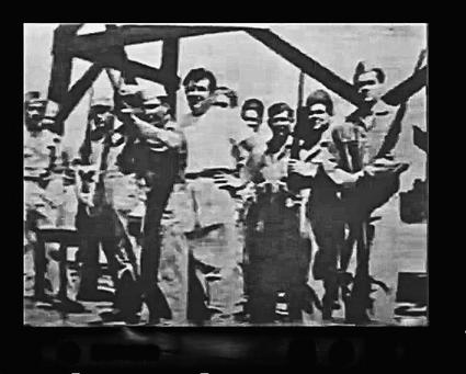 Above - Andy Devine (center, in white shirt) with gunnery trainees during World War II. His innovative skeet-shooting method for waist gunners was later recalled on This Is Your Life