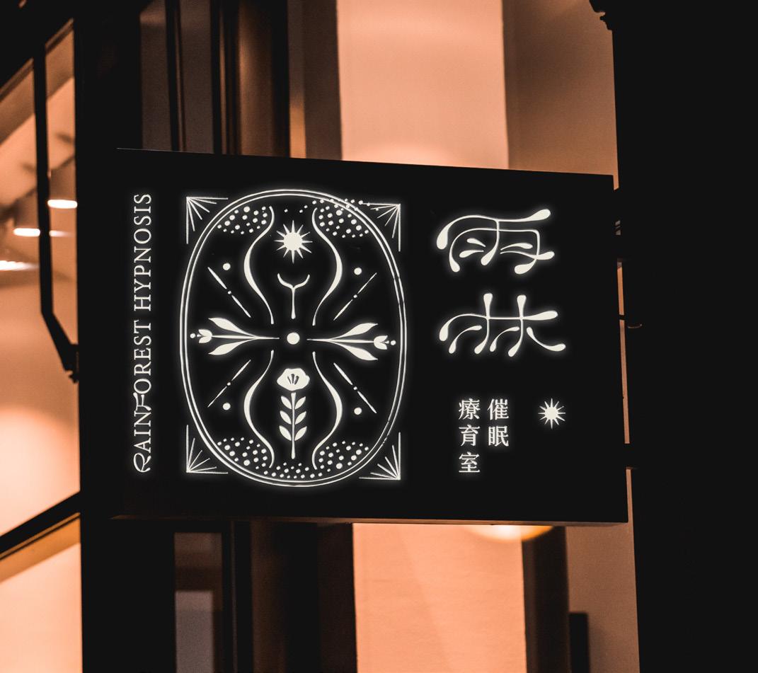 以催眠的能量與神秘感為出發點,業主希望能讓品牌 有大地與發光的感受,因此在logo上的圖形發展有D NA,與土地的結合,同時也是女性身體曲線的展現, 整體走向古典神秘的風格,希望帶給客戶一種溫柔力 量。 品牌設定與設計 雨林催眠療育室 雨林催眠療育室 15
