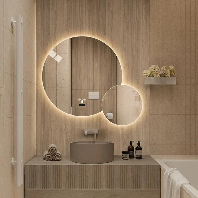 InfuseYourBathroomwithNatural Harmony:OurOrganic-ShapedMirrors CreateaWelcomingAtmosphere.