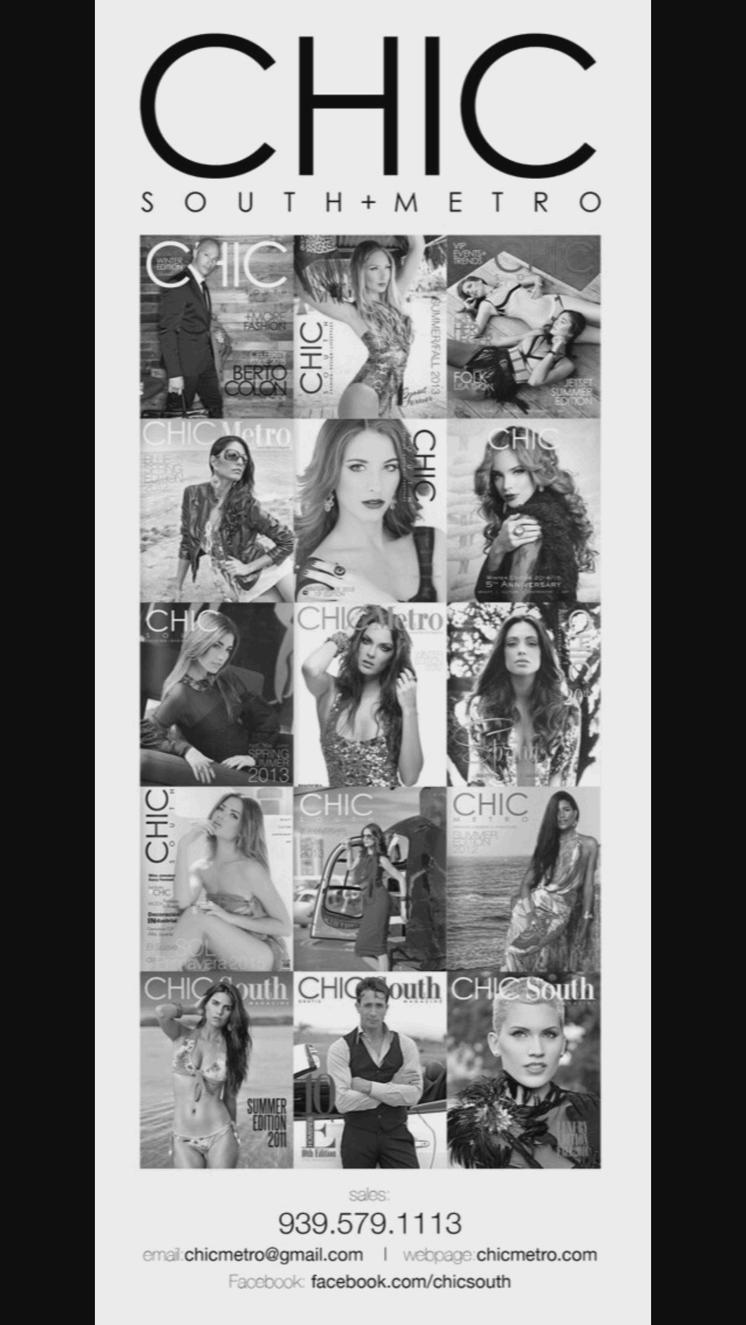 Déjate seducir por los encantos de CHIC SOUTH “Yauco Edition” Anunciarse en nuestra revista le brindará la oportunidad de mercadear su negocio de una manera fina, diferente, altamente atractiva y con un alcance impactante. Con15añosdetrayectoriaahoraconmásexcelenciayaunnivelmásalto. Queremosqueseanparte deestaediciónespecialparaelPueblodeYaucoquevinoaraízporconversacionesconempresariosyaucanosque nos dejaron saber su situación en cuanto a la falta de un medio impreso responsable para mercadear sus negocios. ConChicSouthdisfrutarádenuestrarutaprivilegiadayestaráenbocadetodos. Queremosayudaralos dueñosdenegociosamercadearseennuestraversiónimpresay enlaversióndigital,amejorarsuimagenpara quelosclienteslosveanylosauspicien. Queremosquedejenplasmadoennuestraspáginassuhistoria. Cómo? publicandounanunciodesusservicios,productosounperfildestacandosutrayectoria Eshoradebrindarleun “upgrade”asumarcaonegocio.