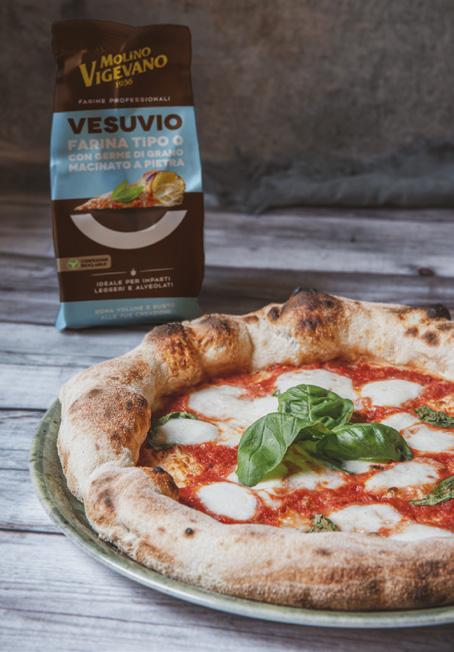 Marchio di riferimento per le farine dedicate a preparazioni dolci e salate, Molino Vigevano è stato il primo a sviluppare delle linee specializzate per uso sia professionale che casalingo, con l’obiettivo di migliorare il benessere e semplificare la vita dei consumatori. I prodotti sono concepiti nel rispetto della tradizione molitoria, arricchiti con germe di grano vitale, ovvero il cuore del chicco, ricco di nutrienti essenziali, un ingrediente naturale che apporta benefici nutrizionali grazie al contenuto di calcio, fosforo, magnesio e vitamine, favorendo la maturazione completa dell’impasto, attraverso la presenza di zuccheri semplici biodisponibili all’interno del germe stesso. Nella vasta gamma, la referenza distintiva è Vesuvio, che nasce dall’esigenza di ricreare la pizza napoletana anche nel forno elettrico. Molino Vigevano sceglie, anche in questo caso, il germe di grano ancora vitale, per infondere nei prodotti aroma e gusto inconfondibili, insieme al caratteristico colore dorato. A conferma degli obiettivi raggiunti, nel 2025 Vesuvio è stata una delle referenze elette Prodotto dell’Anno per la categoria Farine e Preparati dalla ricerca Circana, condotta su più di 12.000 consumatori italiani: il 95,8% degli intervistati che ha dichiarato di aver provato il prodotto l’ha trovato “molto soddisfacente”, apprezzando la varietà della gamma di farine, con un plauso per i pack riciclabili, con certificazione Aticelca, realizzati da materie prime gestite in maniera sostenibile da fonte controllata FSC.