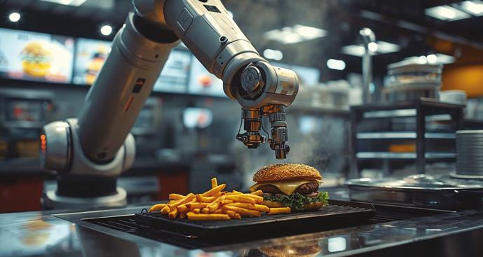 Uno degli esempi più significativi è l’uso di robot e automazione: nel settore dei fast food si è affermato il braccio robotico capace di friggere e grigliare in autonomia. Si tratta di un’attrezzatura con la quale sono impostati parametri di quantità, temperatura e tempo e la macchina replica automaticamente i processi impostati senza pericoli per l’ope-