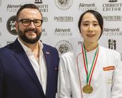 Matteo Luxardo, responsabile export della storia azienda con sede a Torreglia, Pd, premia Maya Morita con la medaglia d’oro, quale vincitrice dell’edizione 2024 del Gran Premio Luxardo.