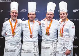 Con il terzo posto sul podio di Parigi, il team Italia si aggiudica la qualificazione alla Coupe du Monde de la Pâtisserie. Appuntamento, dunque, il 22 e 23 gennaio 2027 al Sirha di Lione tra i grandi della pasticceria mondiale per Alessandro Fiorucci, Marco Deidda e Gabriel Gianforchetti. Ma com’è andata la qualificazione svoltasi il 18 e 19 gennaio al Sirha Bake&Snack? Bene, vista la ragguardevole posizione raggiunta su 8 squadre, che ha visto il nostro Paese preceduto solo da Francia e Belgio, rispettivamente al primo e secondo posto, con la qualificazione anche di Olanda e UK (il cui trio contempla anche l’italiano Francesco Genovese).