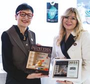 Livia Chiriotti con il numero di novembre-dicembre 2025 di “Pasticceria Internazionale”, con la copertina di Via delle Arti, e Elena Prodan, marketing manager, con la targa premio.