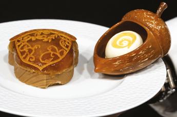 “Per lo street food al cioccolato – prosegue il capitano –, siamo partiti da un tronco reale che facevamo finta di innaffiare e da cui, con un apposito meccanismo, facevamo crescere delle spugnole, ovvero dolcetti al cioccolato composti da ganache al cioccolato fondente, cannella, vaniglia e caffè, e con all’interno un cremino montato alle nocciole salate.