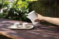 福茶具組以雙層無把手設計,隔熱的同時可提昇握感舒適 度,壺嘴俐落不滴漏。兩只茶杯可收納於壺體內,輕巧便 攜,是設計與實用並重的旅茶良伴。