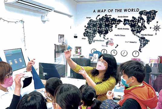 「教學活動目前進入數位教學時代,所 以也都是用 5 G智慧學習,以及研發互動桌 遊的悅趣化學習,透過遊戲方式來學習、體