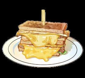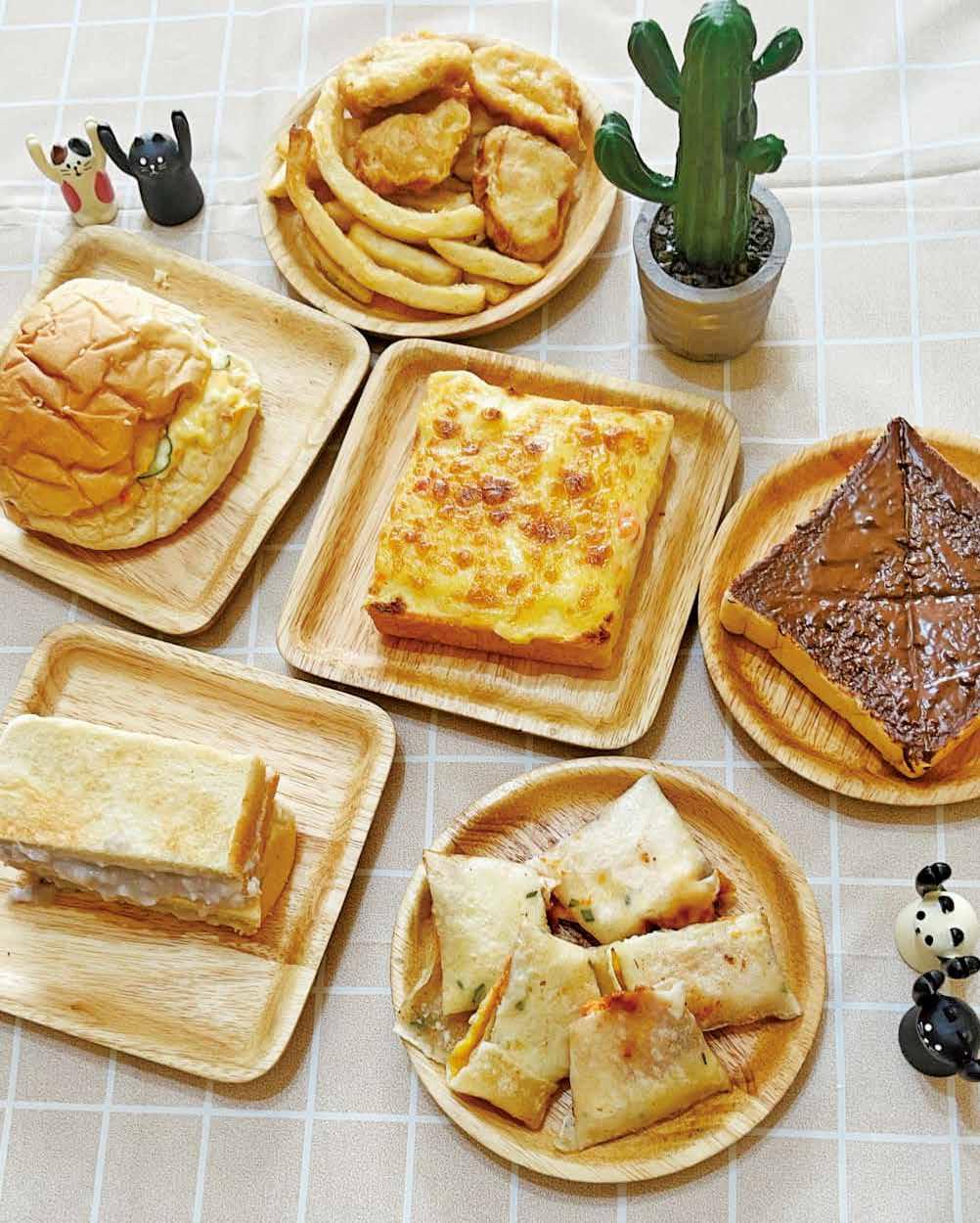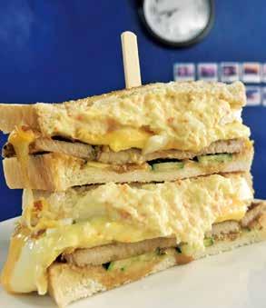 「失控起司肉蛋」是店內的人氣產品, 肉蛋吐司加上瘋狂的起司,吃起來很滿足, 很失控。自製的薯泥,可做蛋餅、吐司、漢 堡,也可以加入招牌肉片成為「薯泥豬排吐 司」,既營養又有飽足感的早餐。