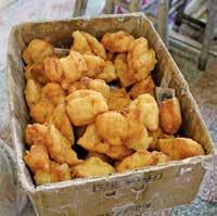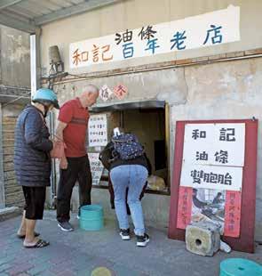 每天要炸的油條數量非常多,大多是廣 東粥店的訂單,油條搭配廣東粥很好吃。可 以說一種生活習慣吧!郭媽媽說,廣東粥搭 配油條,或是豆漿搭配油條,還是搭配麵線 糊、鹹粥這些都很適合,金門人大多都是習 慣吃這些。