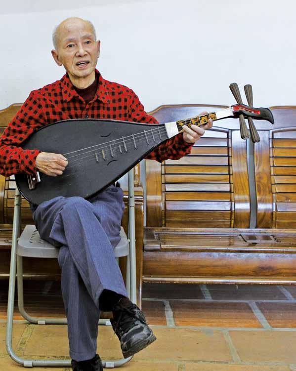 文筆流暢,還學習南管,擅長二胡、琵琶、 笛子等樂器、吟詩唱詞,現在是金門樂府傳 統樂團成員,十多年努力學習南管,每月在