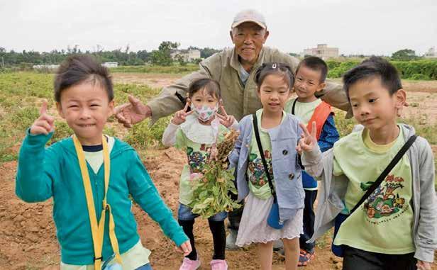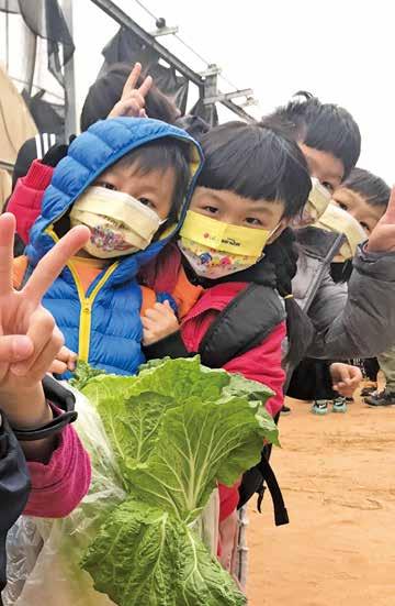 湖小的小朋友校外教學親近土地學拔菜,小朋友充滿活力。