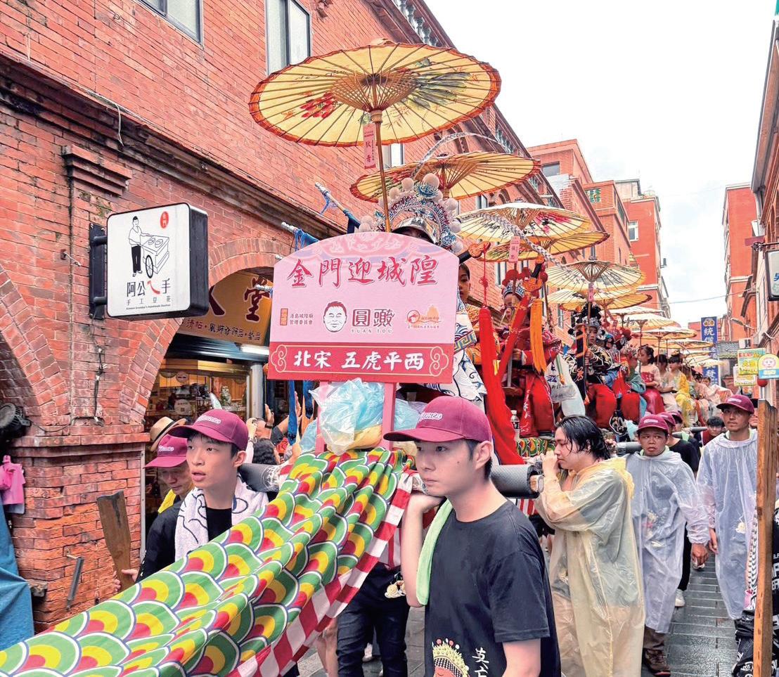 夕陽餘暉斜灑街角,炭爐的紅焰依舊跳 動,陳老闆專注地翻轉著沉重的鐵模,彷彿 在熱氣與蛋香中,敲打出一頁頁屬於金門的 悠遠歷史節奏。輕輕咬下一片剛出爐的蛋捲, 清脆的「 咔 滋」聲響在齒頰間愉悅地綻開, 入口的不僅僅是味蕾的極致饗宴,更是對一 段溫暖舊時光的溫柔觸摸。這家深藏於巷弄 中的質樸老店,所販售的早已不僅是點心本 身,更是在悉心守護著一段代代薪傳的地方 文化、一份緊密相連的人情記憶。