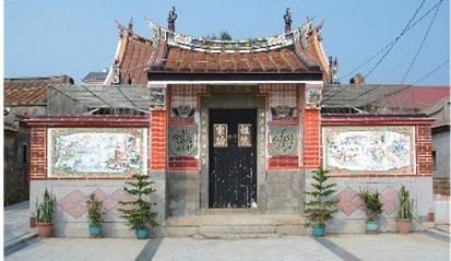 聚落宅第多為紅磚紅瓦的閩南傳統建築,大抵採「坐西 北朝東南」的方位呈輻輳狀配置。供奉境主魏府將軍的 村廟「鎮南宮」坐落於村境前端;而奉祀水仙王與福德 正神的「仙德宮」及風獅爺則設於臨海處。