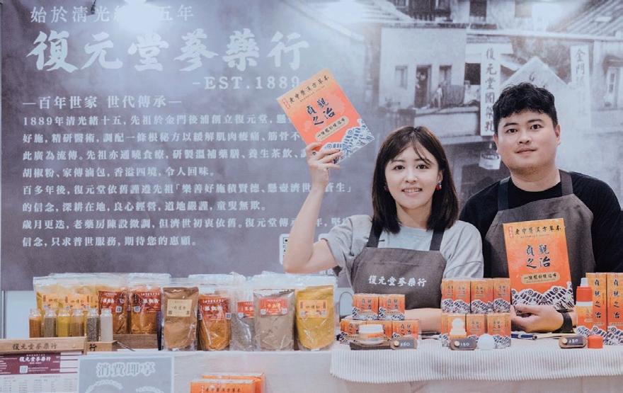店家亦積極參與各類文創市集,並勇於 嘗試跨領域合作,持續拓展品牌的能見度與 影響力。許祖心欣慰地表示,透過這些努力, 許多顧客重新認識並喜愛上復元堂,他們不 僅會主動諮詢產品的選購方式及養生保健秘 訣,更有不少人會特地遠道前來金門,親自 踏入復元堂參觀、體驗並選購產品。