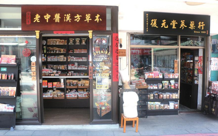 搗藥缽、中藥秤盤及各式傳統炮製刀具等珍 貴文物,又結合了明亮潔淨的現代空間感與 井然有序、標示清晰的產品陳列方式,為消 費者營造出更為舒適、友善的購物環境,也 讓年輕一代的顧客能更輕鬆自在地親近並體 驗中藥文化。如今,走進復元堂,更能深刻 感受到金門百年漢方文化的獨特魅力,以及 那份傳統與現代交織的浪漫氛圍。