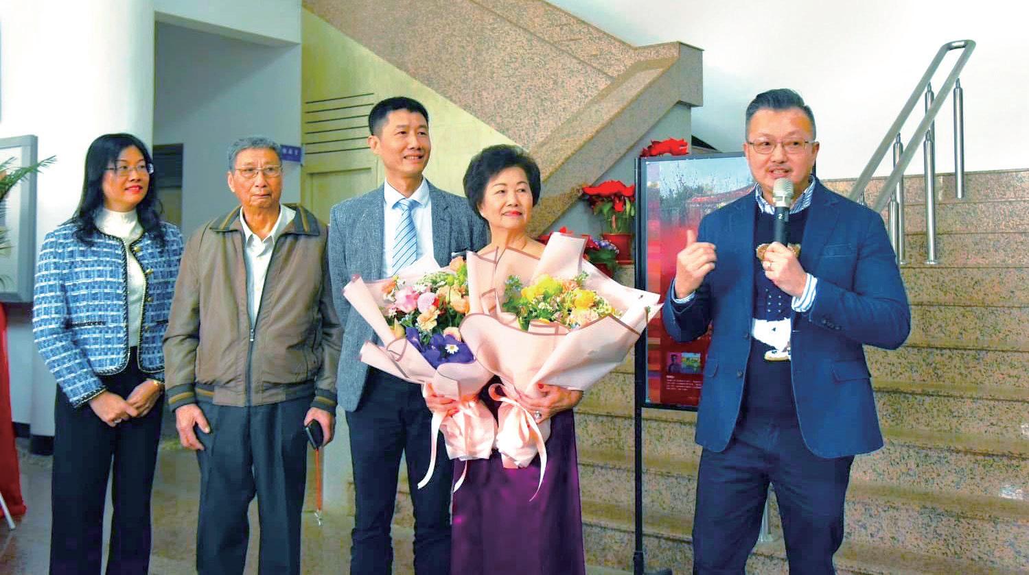 經過數年的苦幹實作與不斷進修,他終 於通曉珠寶設計、寶石鑑定、首飾金工、寶 石鑲嵌等全方位專業智能,成為一位頂尖的 珠寶職人,並創立個人工作室,為香港和臺 灣的珠寶同業提供製造代工服務,一步一腳 印,在業界嶄露頭角。 114 年 2 月,盧春雄(中)特別返回金門參與「賞心悅睦