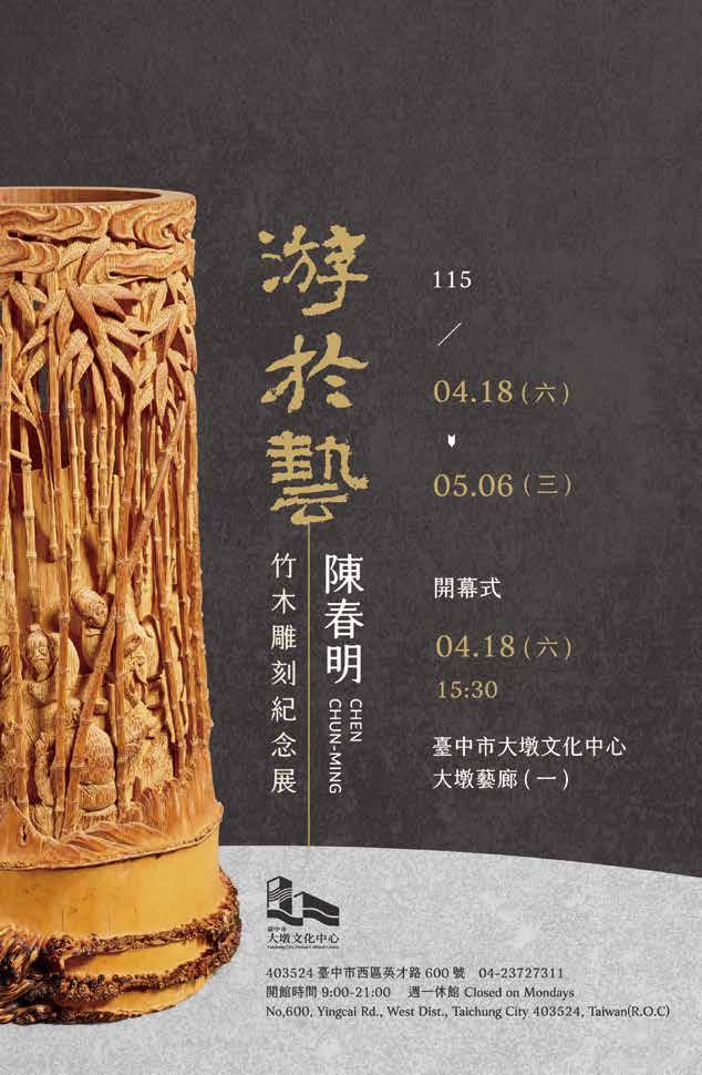 03/28 六 -04/25 六 11:00-19:00 ( 每週日及兒童清明節公休) 松風閣畫廊 松竹旗艦店 (臺中市北屯區松竹路二段 349 號) 04-2247-4215
