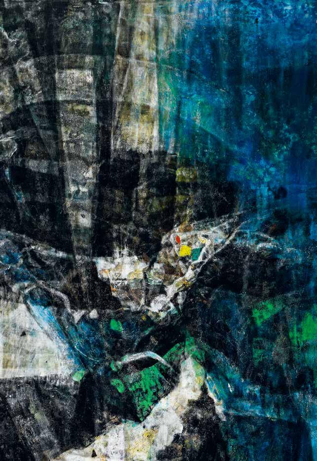 謝淑慧以複合媒材作為創作語言,將紙漿、手工紙、 銀箔與礦物顏料層層堆疊,建構出柔軟又堅韌的視覺 場域,展現女性在成長歷程中的情緒變化與自我省 思。