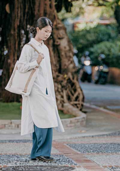 歸屬感給了她深耕的力量,決定接手家業,用創 意展現藺草生命力,與「本質創作室」劉開平設計師 合作設計「藺編背帶包」,透過麂皮絨和手工藺草編 織的搭配,演繹出藺編的新姿態,跳脫了樸實無華的 質感,讓日常伴著淡雅的藺草香。