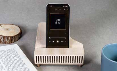 和竅門設計王俊隆設計師共同合作開發「鋼琴造型手 機擴音座」,藉由琴箱的共振原理,只要架上手機, 不需要插電,就能達到擴音效果,創造生活的旋律。