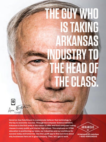 THE GUY WHO IS TAKING ARKANSAS INDUSTRY TO THE HEAD OF THE CLASS. Governor Asa Hutchinson is a passionate believer that technology is the key to economic success. Through his Computer Science Initiative, Arkansas is the first state in the nation to offer and fund computer coding classes in every public and charter high school. This emphasis on STEM education is positioning our state, our industries and our workforce for success today and tomorrow. Use the LayAR app to find out more about ArkansasEDC.com/asa why businesses here are in good company. Then, let’s get to work. 1-800-ARKANSAS