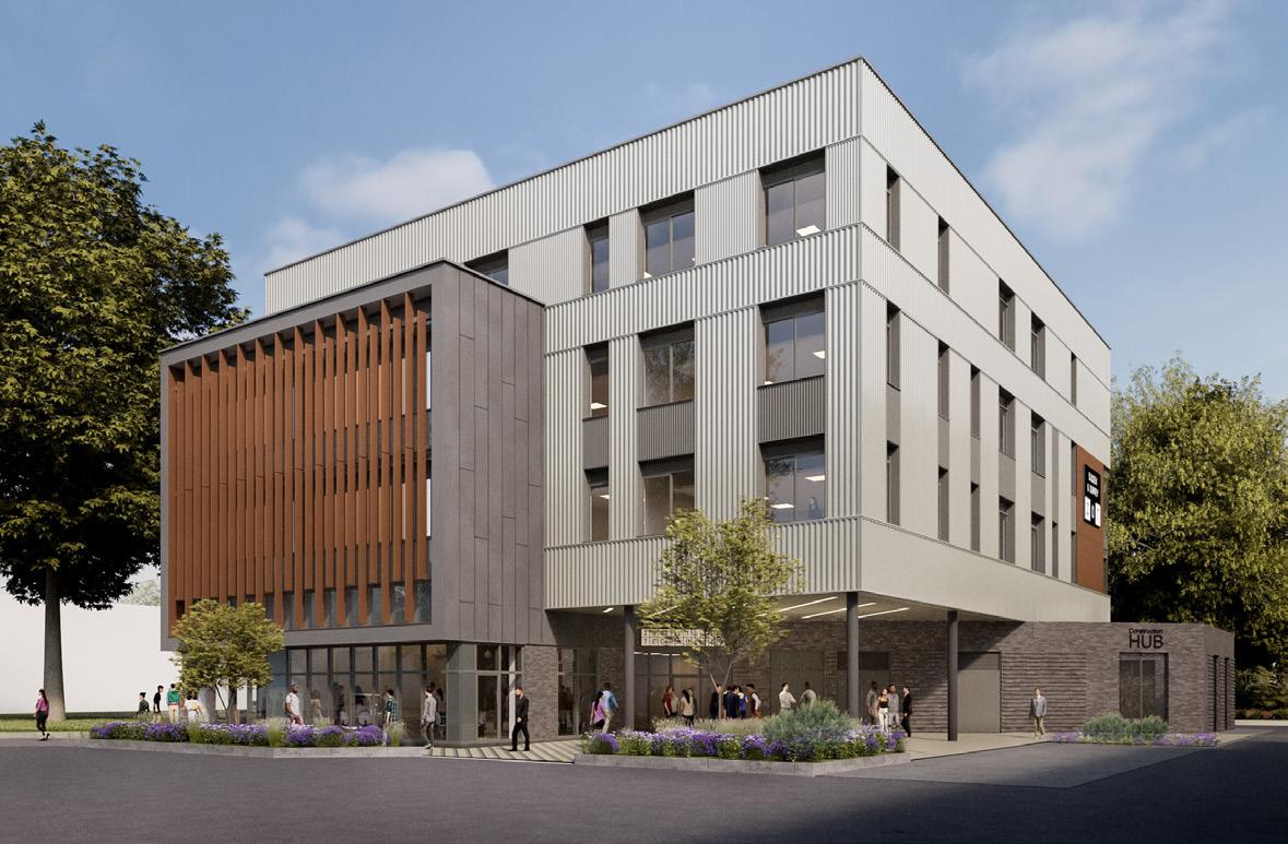 The Hub of the Sussex & Surrey Institute of Technology will be based on the campus of Crawley College. The new centre will provide high-quality learning environments housing specialist construction, engineering and digital ‘Learning Factories’, designed to be inclusive for all students attending the new institution. Work began on the new building in July 2024. It will open its doors in autumn 2025.