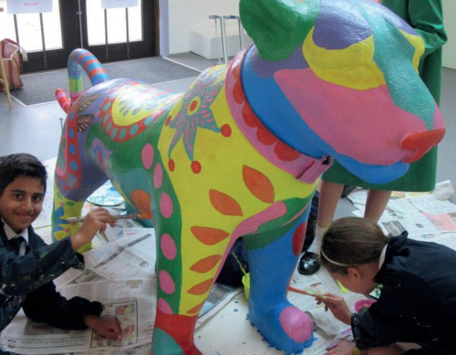 Several years ago, a generous parent, Jeanie Goodey, donated the Purple Panther from a Mulberry ad campaign. Once proudly displayed outside the Art and DT block, it had weathered over time. Mrs Tilbrook and Mrs Collins, with help from Art Club, Mrs Panesar, and Mrs Brown, restored it. Eight talented Year 6 pupils then transformed it with vibrant Indianstyle designs, making it sparkle once more. It was a joyful, creative journey for everyone involved.