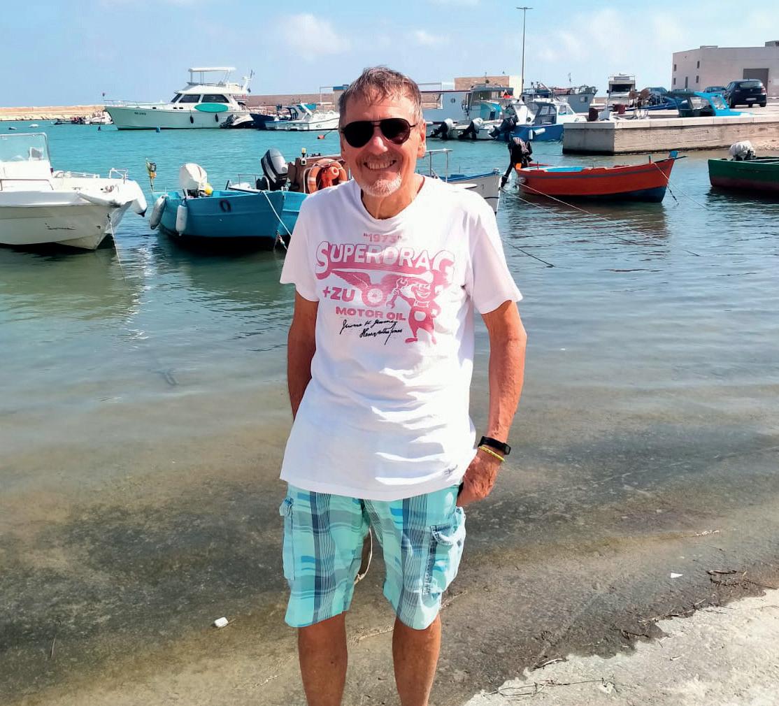 In 2009, Alan and Veronica responded to a suggestion from their son Graham to live in Italy where he was living. Two left-hand drive cars purchased, and daughter, cat, and rabbit loaded, they drove there and renovated an old property. Italy more than suited them all – the people, the sunshine, the mountains, wild flowers, beaches, and delightful old towns. Riding his 600cc Suzuki along the Adriatic coast, the easy access to the Imola and Misano Circuits was a bonus for Alan, and he and Graham also made an annual trip to nearby Le Mans.