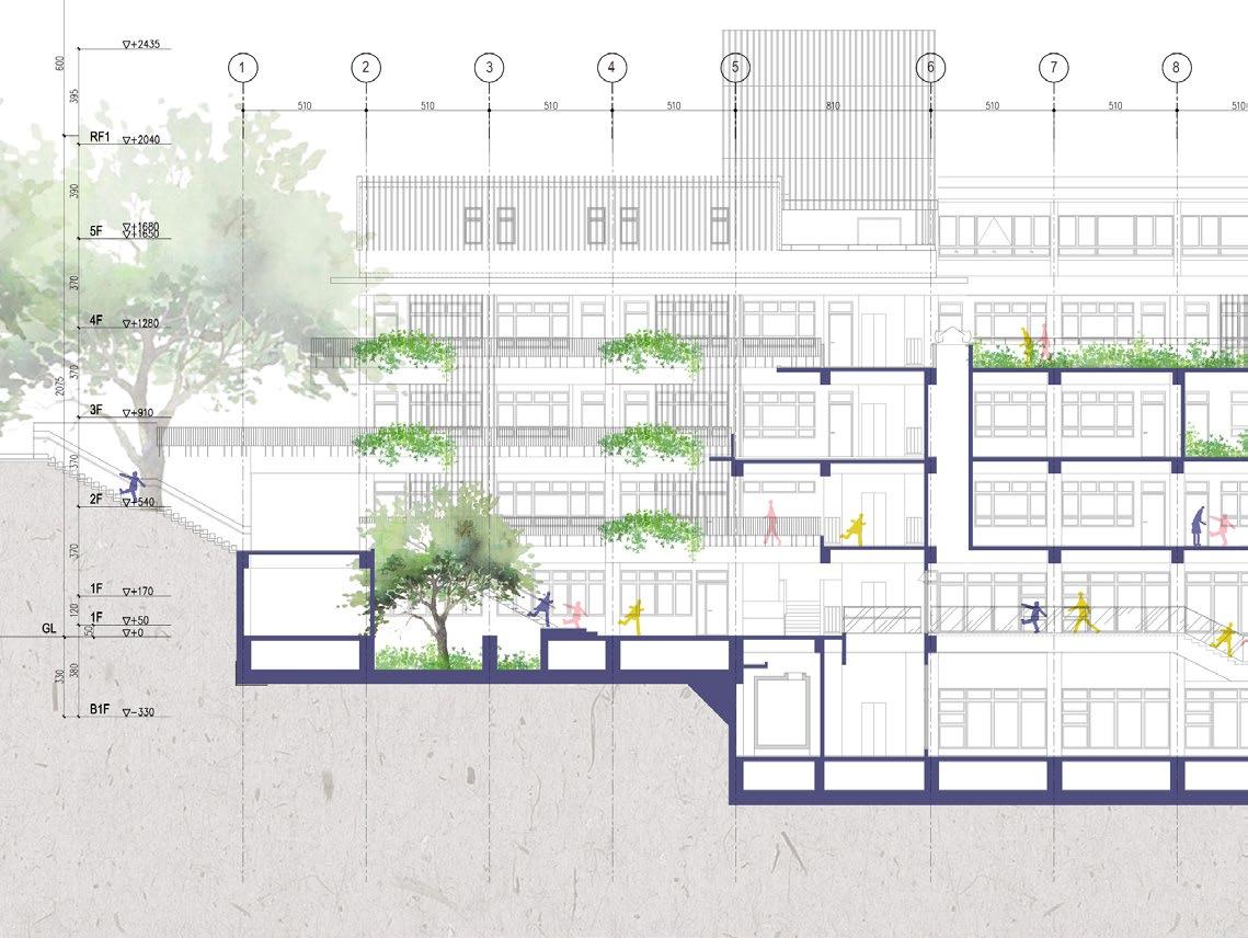 Located in Neihu, which is on the northern side Taipei Basin with an array of mid-level hills and lakes sitting in between, Daren Girl's High School features a scenic greenery environment shaped by a surrounding skirt of hills and a pond at front. The project aims to remodel the master plan to increase educational spaces that realize its Catholic core value— learning through experiences — in its inherent ecological context.