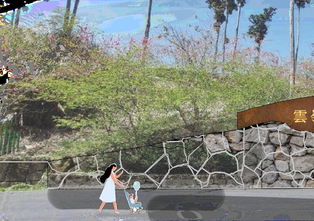 The project redesigns the entrance of Yunling Hill, a vantage point known for its expansive views and natural beauty. The redesign involves removing existing stone planters and introducing new stone walls, basalt paving, and corten steel plates. These elements will interact with the environment over time, harmonizing with the mountain mist and creating an evolving visual experience. The pathway expands into the boundless natural surroundings, inviting visitors to immerse themselves in nature.