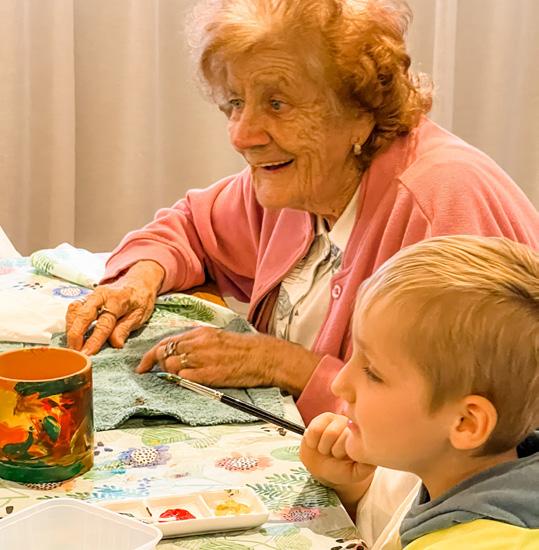 With our intergenerational program, the children visit their grandfriends fortnightly. They do crafts, play games, sing songs, share morning teas, and have meaningful chats. For their young-at-heart mates, the visits help alleviate challenges of isolation, and brings joy, feelings of selfworth, developing new friendships, and fun. For the children, the visits have a multitude of benefits, including: