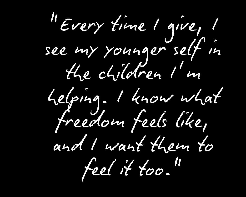 It’s the story of children whose lives were changed by a single “yes” from donors who felt a tug on their heart and followed it. The story of volunteers who risk it all to rescue children from the darkest of situations. The story of young adults who were once the ones being rescued and are now reaching back to become catalysts themselves. It’s the story of a chain reaction—of freedom in motion.