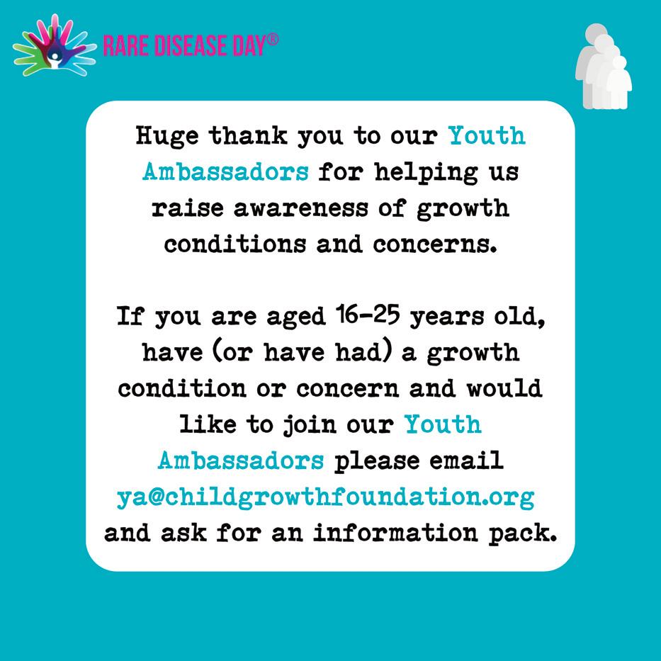 Collboration is such an important part of our way of working, and Children’s Growth Awareness Week was a lovely opportunity to not only raise vital awareness of growth conditions and concerns, but to also share messages with our communityfrom other individuals and charities through social media takeovers (read more on these on page 39).