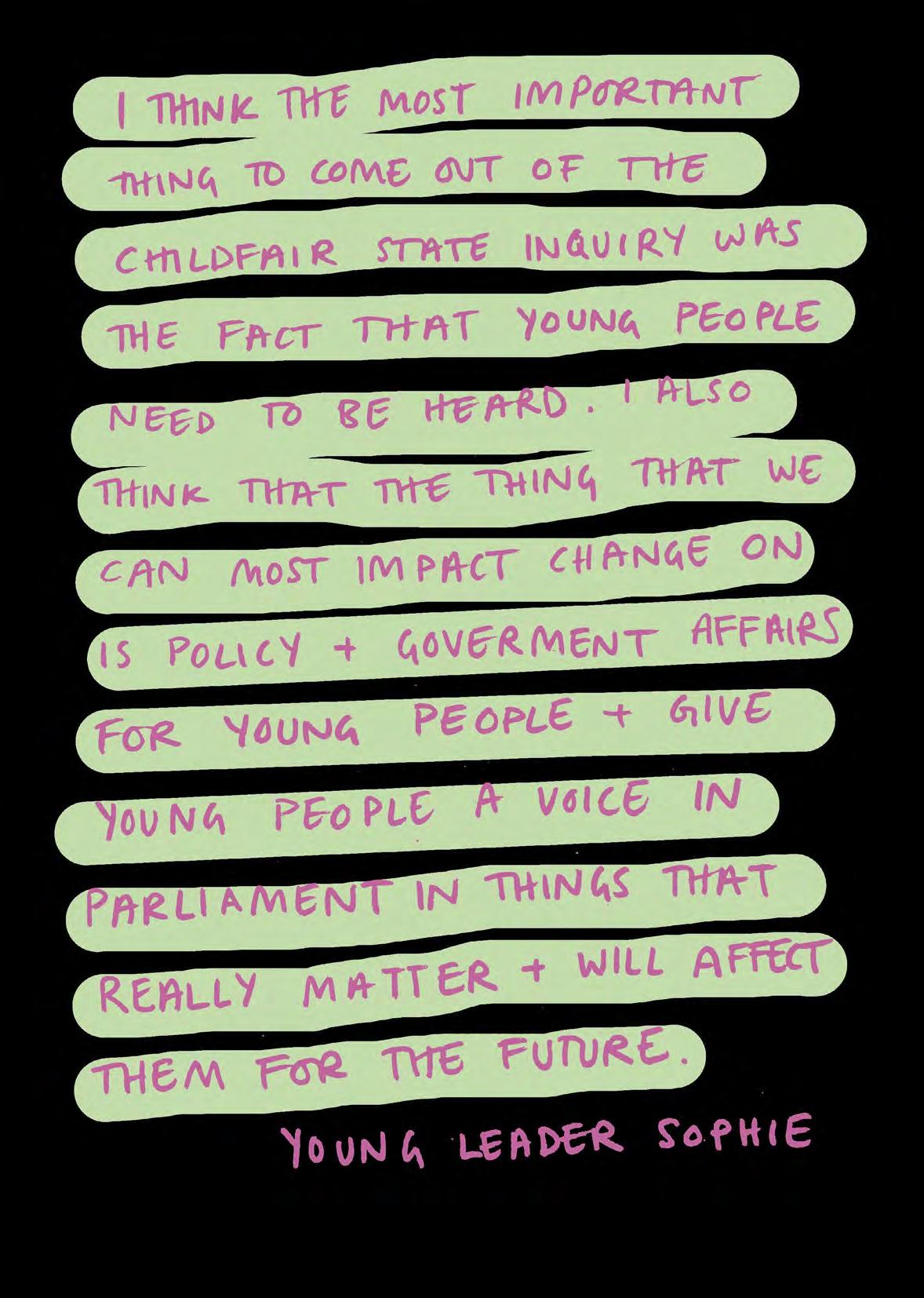 Beyond the branches of the tree, however, they all have a similar overarching message: children and young people must be involved in all levels of decision-making, on a sustainable and systematic basis, so that as the welfare