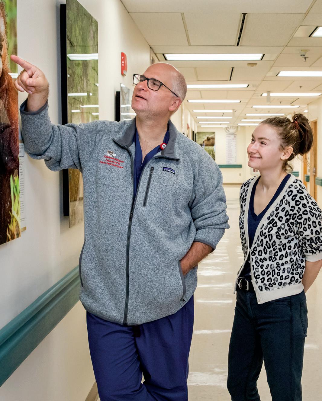― Allison Proctor, Animal Visitation & Therapy CoordinatorBarney builds relationships with kids whose hospitalizations can last weeks or months. “We’ve had a patient come out of anesthesia and ask, ‘Where’s Barney?’” says Allison Proctor, the social worker and animal behavior expert who leads our Animal Visitation and Therapy Program. “Another child walked him around her unit every day during her stay. This helped her meet mobility goals, which meant she went home sooner.”