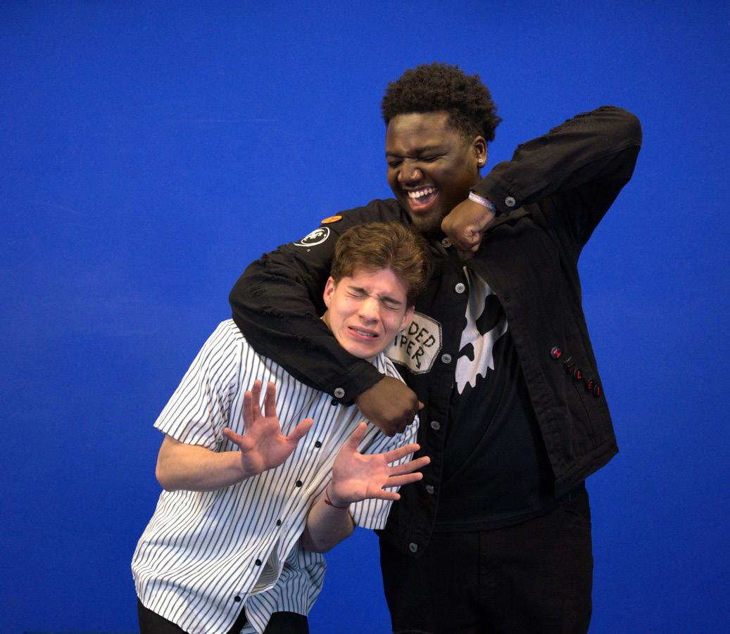 Actors had fun during the photo shoot to promote the show. Shown left: Zakary Clausell-Santos (Greg) and Griffin Digsby (Rodrick) get into character.