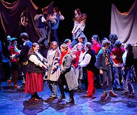 Douglas Clark scenic design is brought to life with bold lighting and projections by Gordon W. Olson.