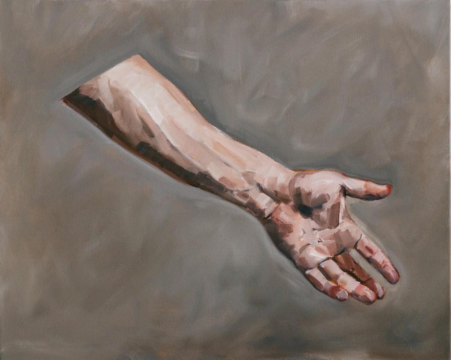 MacConnell’s paintings of Greek art come from photos taken during a 2009 trip, and mostly present works as they appear in museum settings - long removed from their places of origin and context. His images of contemporary models similarly lack identifiable surroundings that would ground them to a specific time or place. The removal of narrative framework leaves much to speculation, urging the creation of stories to fill in the unknowns, to understand who or what is being considered. His fracturing of body parts - noses, ears, genitalia, and more – produce modern ex votos, pieced offerings functioning as representations of one’s whole self.