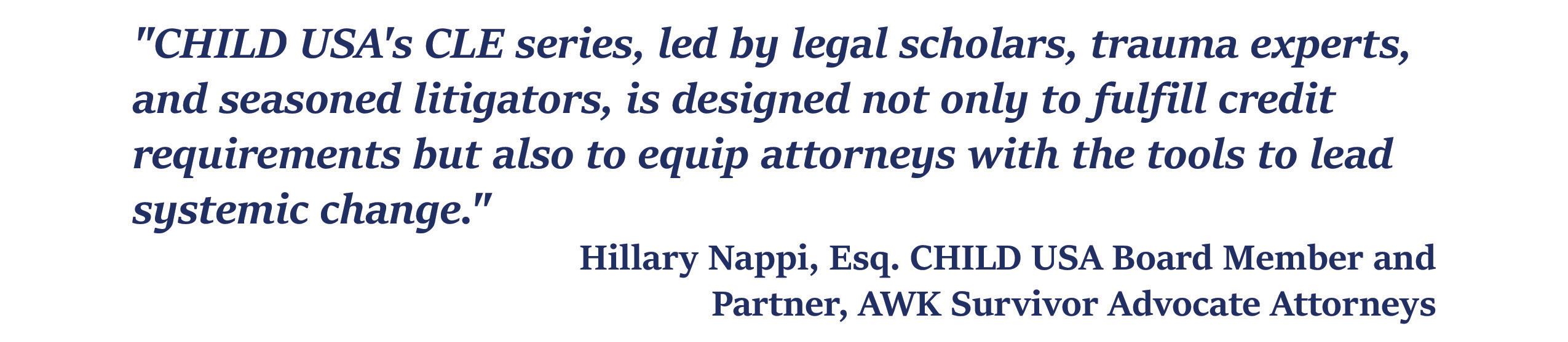 “Thanks again for your generous support of CHILD USA’s think and-do tank research and outreach!”