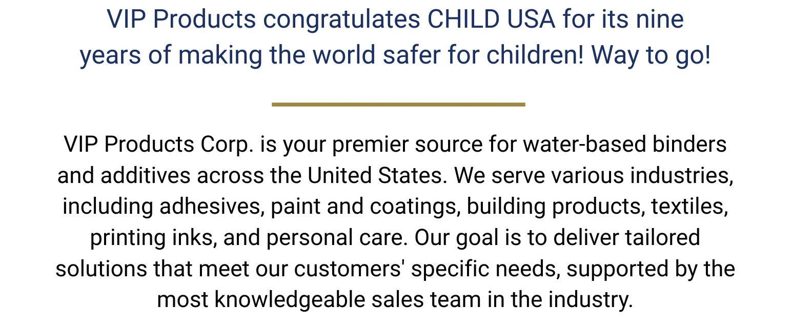 I want to express my deepest gratitude to each sponsor and donor for your presence, support and dedication to CHILD USA. May tonight be a celebration of all that we have accomplished together, and a reminder of the extraordinary things we can achieve for children when we unite for a common purpose.