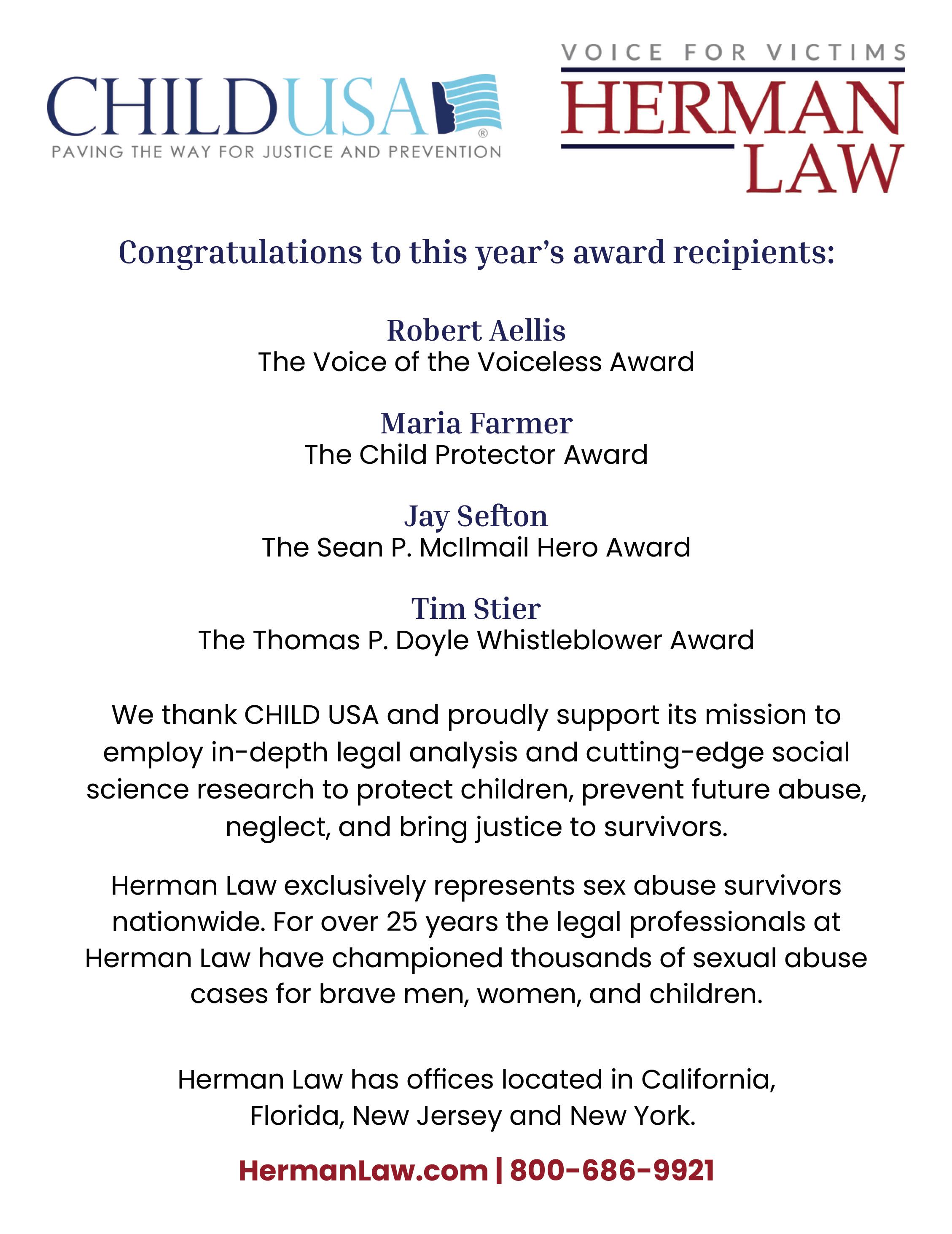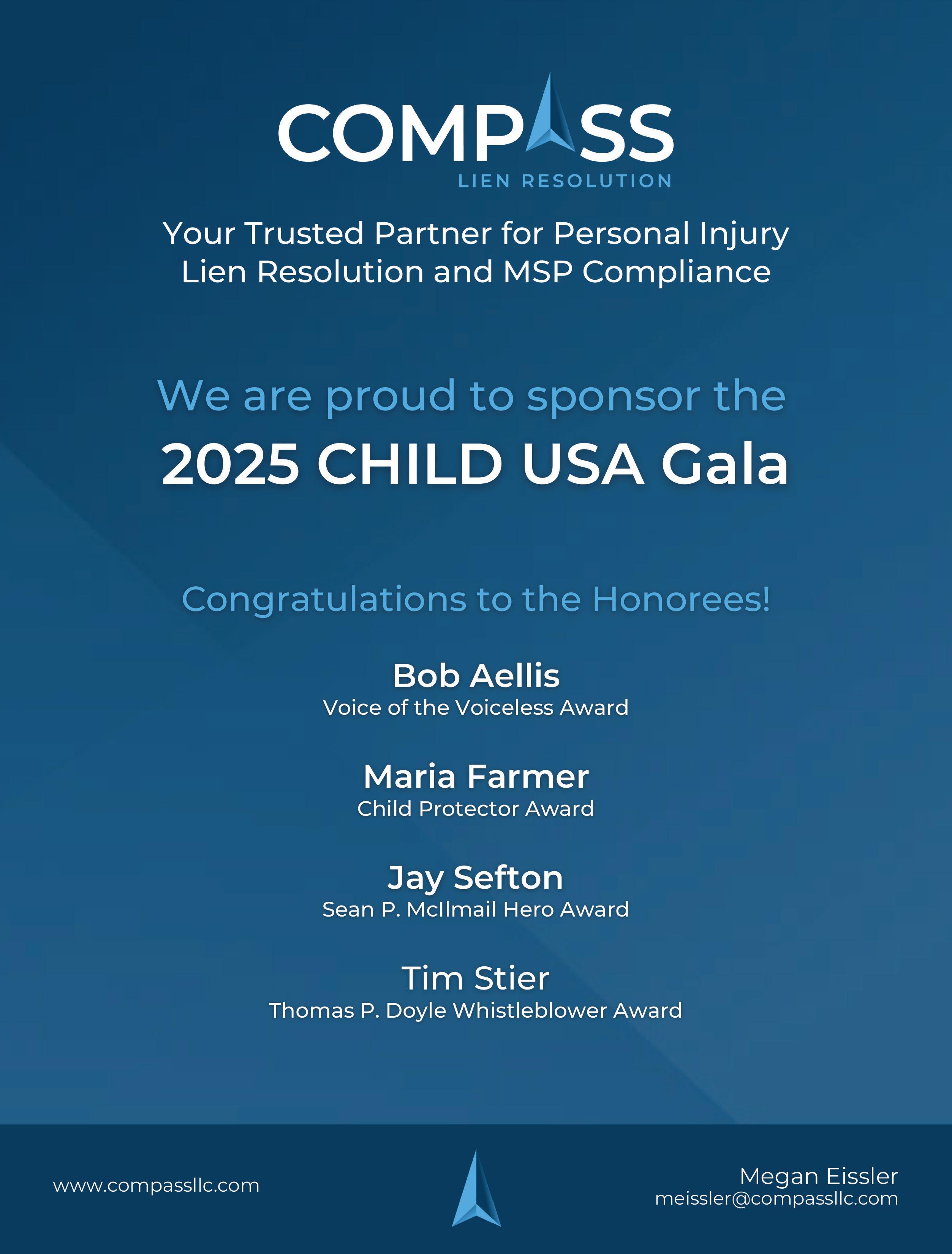 “It’s not an honor I take lightly. In fact, I’m still finding the internal runway to let it land. I am very grateful for it and for all that an organization like CHILD USA is doing for survivors.” n
