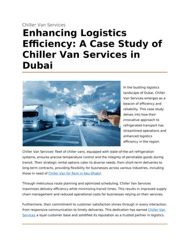 Enhancing Logistics Efficiency: A Case Study of Chiller Van Services in Dubai