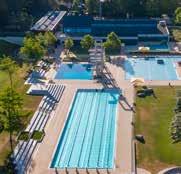 gibt es ein großes Babybecken. Wagemutige junge Klet terer können das Piratenschiff mit Sandfläche direkt neben dem Becken entern. Außerdem locken zwei Sprungbretter und ein separater Bereich mit sechs 50-Meter-Bahnen.