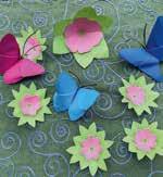 Bastelschere Pailletten Glitzer buntes Bastelpapier Stoffbänder Schnürband Idee und Fotos: