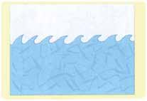 Nimm ein großes Blatt dünnes, blaues Papier (Geschenkpapier eignet sich gut) und zeichne für den Hintergrund oben eine Wellenlinie auf.