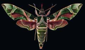 Schillernd in Szene gesetzt: (v.o.n.u.) Oleanderschwärmer, Vierpunktige Sichelschrecke, Regenbogenfalter und Asiatischer Rüsselkäfer
