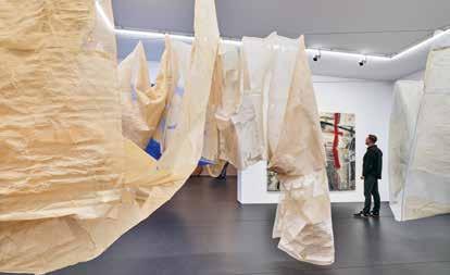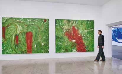 der Akademie für Bildende Künste in Karlsruhe. Zudem werden erstaunliche Parallelen wahrnehmbar, wenn man sich auf genaueres Hinsehen und den Dialog zwischen den beiden Kunstauffassungen einlässt: Die Installationen der Künstlerin, die „mit der Schere malt“, sind trotz aller schwebenden Leichtigkeit mindestens ebenso raumgreifend wie Stolls 2,80 x 2,30 Meter große Gemälde. Und ebenso wie ihre skulpturalen Werke durch die stetige Veränderung wie etwa der Licht- oder Lufteinwirkung zur Perfektion gelangen, beschäftigen sich auch seine Bildthemen mit dem Wandel – mit Wachstum, Werden und Vergehen.